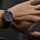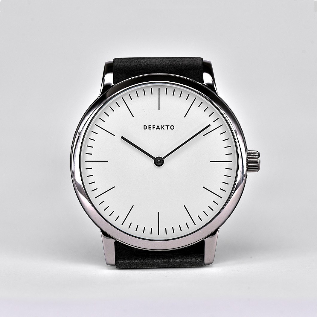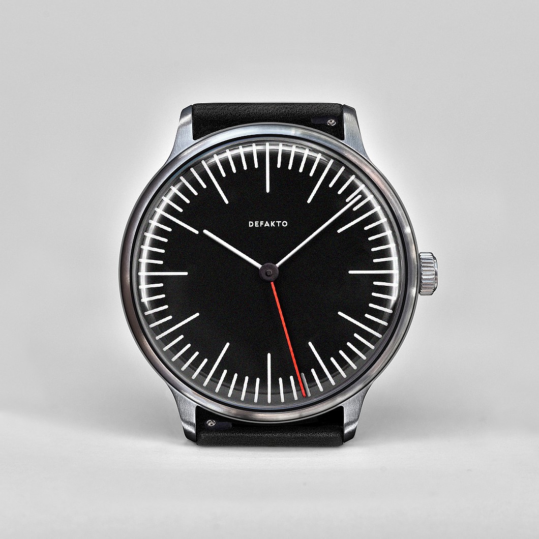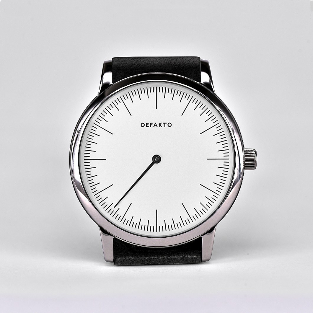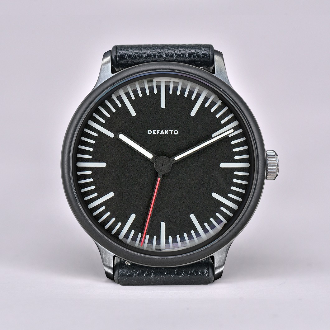 Jetzt mit Defakto Logo (Bilder folgen)! Die neue Defakto Kinetik Duro verfügt über ein, in-house gefertigtes 39mm Gehäuse aus gehärtetem Edelstahl. Zudem wurde bei der Überarbeitung des Kinetik-Gehäuses die Wasserdichtheit von 5Atm auf 10Atm erhöht. Der Hochglanz polierte, neu geformte Topring des Gehäuses bewirkt eine erhöhte Plastizität und reflektiert verzerrt die Umgebung. Das integrierte, minimalistische Design der Defakto Kinetik Duro (39mm x 45mm x 9,8mm, weight 59 g) hat das Ziel die Interaktion der Zeiger und die dabei entstehenden geometrischen Konstellationen visuell hervorzuheben. Die Uhr wurde neu überarbeitet und kommt nun mit Superluminova (bgw9 und red) beschichteten Indexen und Zeigern. Die kompakte Unisex-Uhr eignet sich perfekt für kleinere Armumfänge.